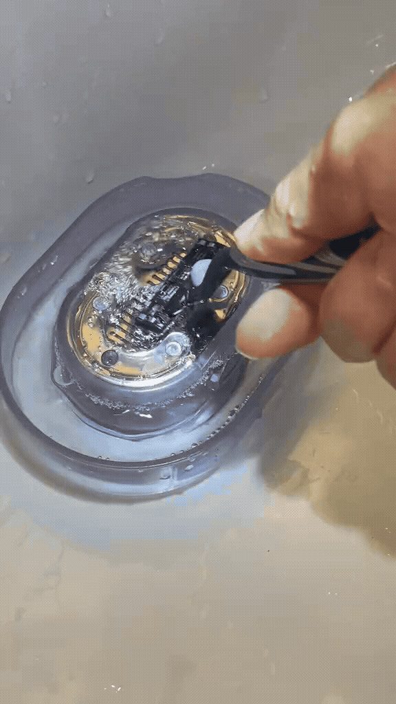 Answer 1: The rinsing stand utilizes specially designed channels that leverage water flow dynamics to effectively rinse away debris, hair, and shaving cream from the razor head. Simply place your razor on the stand and allow the water to do the work, eliminating the need for scrubbing or complicated setups.